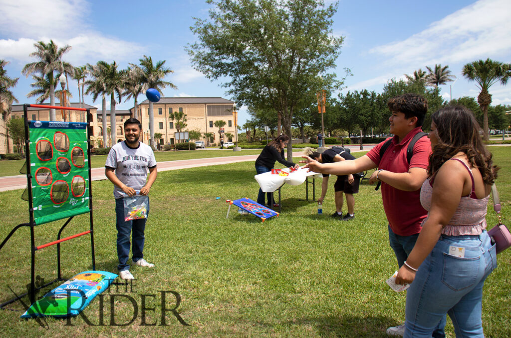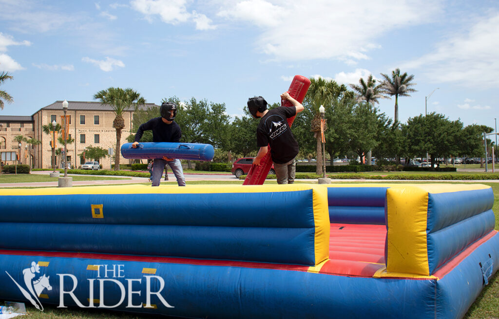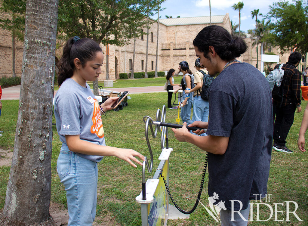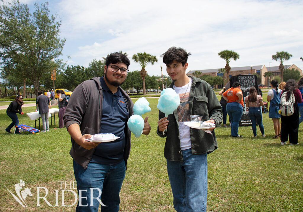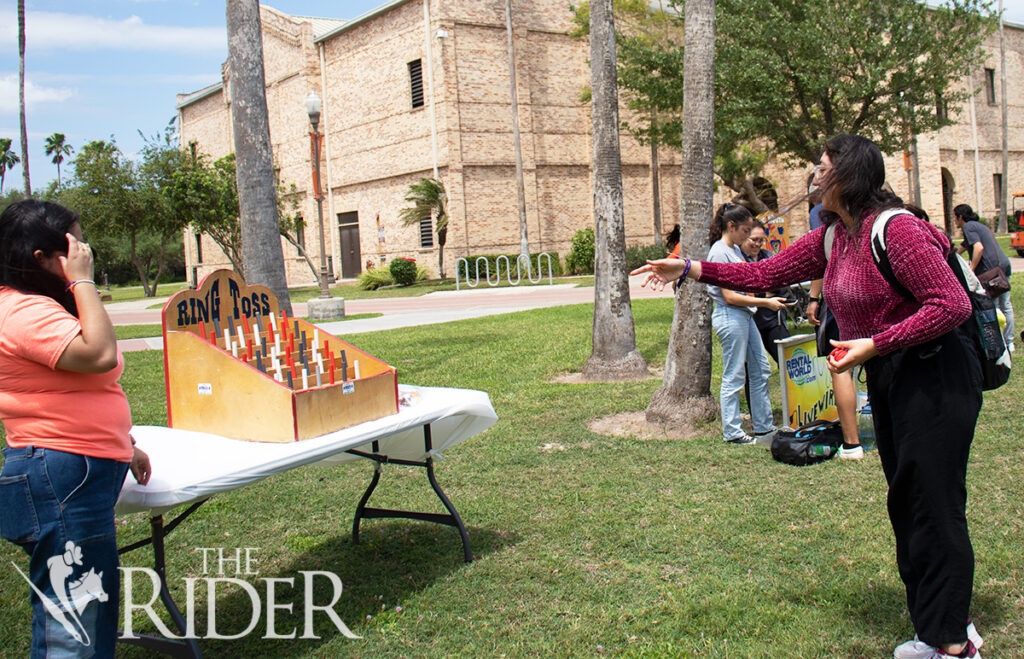 Computer science freshman Samuel Zavala (left) and applied mathematics freshman Tomas Guajardo joust during the Carnival Funfair April 17 on the University Library lawn on the Brownsville campus.Mechanical engineering freshman Laurens Torres (from left) and marketing junior Gustavo Torres pose for a photo during the Carnival Funfair April 17 on the University Library lawn on the Brownsville campus.Biology junior Christopher Gonzalez (right) plays Live Wire during the Carnival Funfair April 17 on the University Library lawn on the Brownsville campus. Also shown is cyber security senior and Student Activities Student Assistant Lourdes Perez.Integrated health science junior Esther Martinez (right) plays ring toss during the Carnival Funfair April 17 on the University Library lawn on the Brownsville campus. Also shown is psychology senior and Campus Activities Board Traditions Chair Chris Vasquez.Nursing sophomore Ramiro Juarez throws a football to win a prize during the Carnival Funfair April 17 on the University Library lawn on the Brownsville campus. Also shown is Campus Activities Board Program Adviser Sam Camarillo (left) and psychology sophomore Adriana Sanchez.