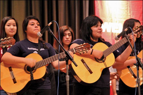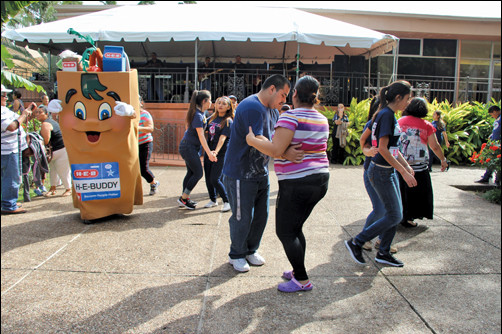 While waiting in line, people enjoyed entertainment from the band Explosión and by the H-E-Buddy.