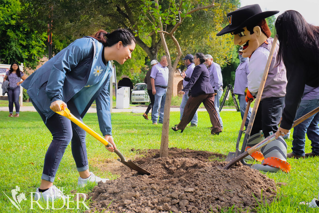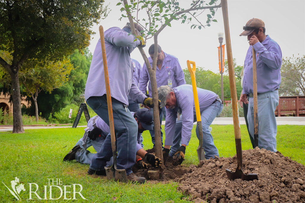 Graphic design freshman Briana Alvizo chooses a plant to keep during the Tree Planting Ceremony Nov. 14 near the Pollinator Garden on the Brownsville campus. The event was hosted by the UTRGV Office of Sustainability.Roxanna Miranda/THE RIDER PHOTOSBiomedical sciences senior Neida Gutierrez (left) helps plant a tree during a Tree Planting Ceremony Nov. 14 near the Pollinator Garden on the Brownsville campus. The event was in observance of Arbor Day. Also shown is the UTRGV mascot.UTRGV maintenance workers plant a tree during the Tree Planting Ceremony Nov. 14 near the Pollinator Garden on the Brownsville campus.
