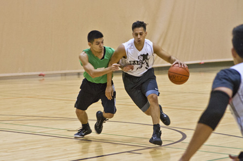 Game night in the Wellness and Recreational Sports Complex is hectic, with matches starting at 5 and taking place consecutively until 10 o’clock. Art Cabrera, reaction specialist, who has an office right behind the main basketball court, is one of two people in charge of keeping all leagues running smoothly.