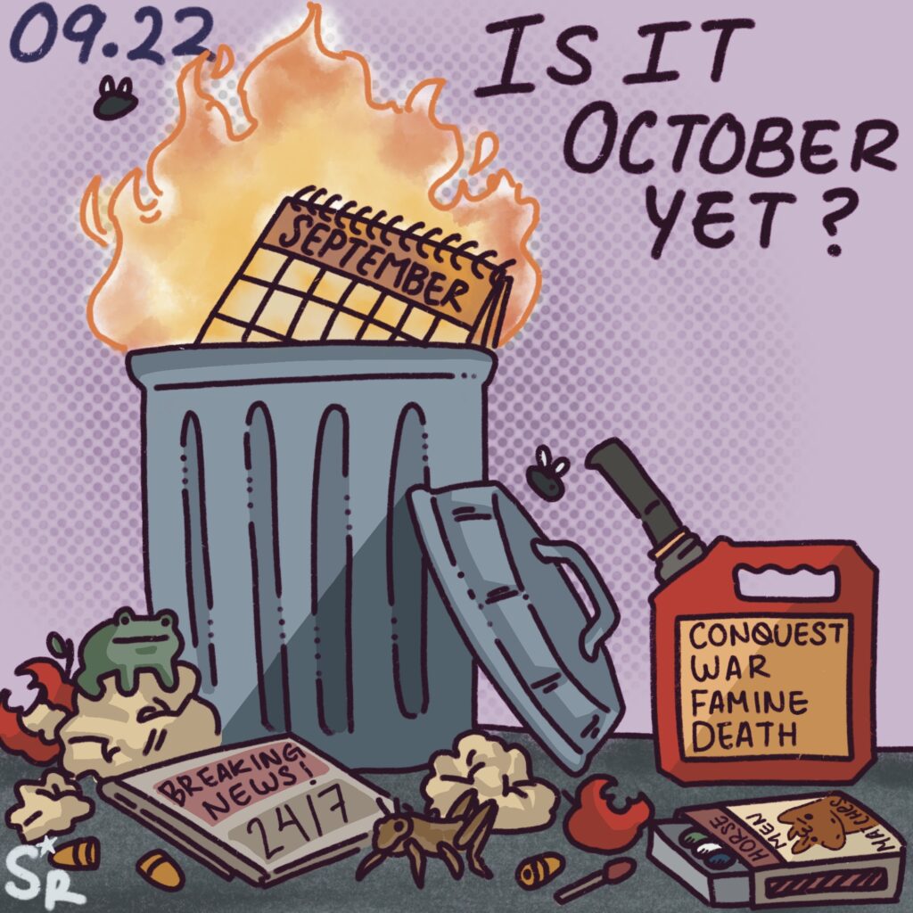 Editorial Cartoon Opinion Is it october yet? Sabrina Ruvalcaba September 22, 2025 About The Author Sabrina Ruvalcaba See author's posts The School’s Wifi Post Views: 76 Post navigation Previous: The Art of Being AloneNext: How do you feel about a potential deal between the US and China to allow TikTok to continue operations in the country? Leave a Reply Cancel replyYour email address will not be published. Required fields are marked *Comment * Name * Email * Website Save my name, email, and website in this browser for the next time I comment.
