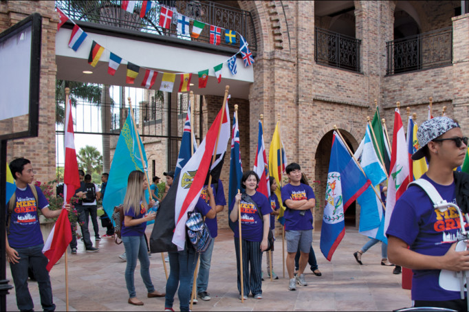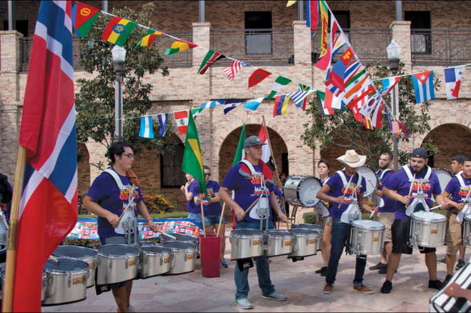 El ambiente estaba cargado de energía; la multitud de jóvenes formó una fila y el desfile multicolor dió inicio. Formado por más de 110 estudiantes y encabezados por una banda de guerra, las 85 nacionalidades acogidas por UTRGV marcharon.