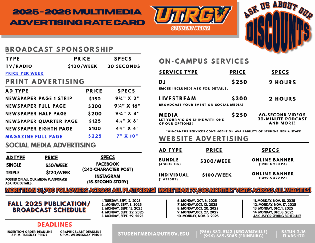 Have a question? Contact us! Call (956) 882-5143 for rates.