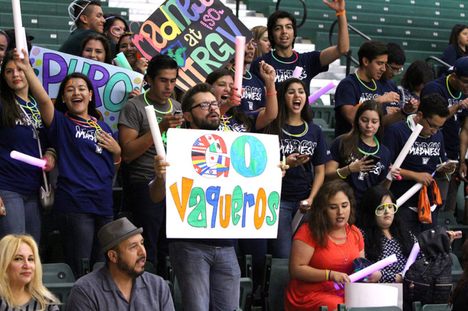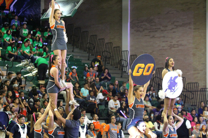 The UTRGV Cheer team performs its routine at Madness last Friday in the Fieldhouse on the Edinburg campus. SARAH CARVAJAL/THE RIDER PHOTOS