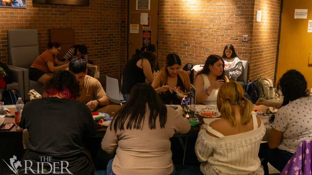Shown are members of the Theatre Department Mathew Castañeda (from left), a theater design senior; Jackelin Vargas, a multidisciplinary studies junior; Debanhi Salazar, global supply chain senior; and Nadja Acevedo, a theatre senior. Jose Rodriguez/THE RIDER Sofia Mejia, an environmental science sophomore, designs her tote bag during the Tote Full of Drama event Thursday inside the Albert L. Jeffers Theatre lobby in the Liberal Arts Building South on the Edinburg campus. Jose Rodriguez/THE RIDERStudents gather to paint and design their tote bags Thursday inside the Albert L. Jeffers Theatre lobby in the Liberal Arts Building South on the Edinburg campus. The UTRGV Theatre Department hosted Tote Full of Drama where students can get a tote bag and design their own. Jose Rodriguez/THE RIDER