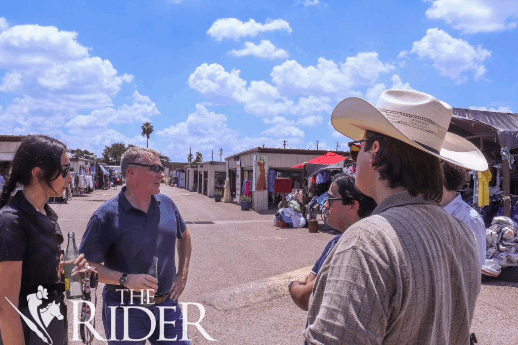 Lily Ramirez, a criminal justice senior; Terry Virts, a former astronaut seeking the Democratic nomination for the 2026 U.S. Senate race; Jorge Salinas, a political science senior; and Abram McKee, a political science junior; discuss the Rio Grande Valley culture Aug. 21. at the Hidalgo Flea Market.